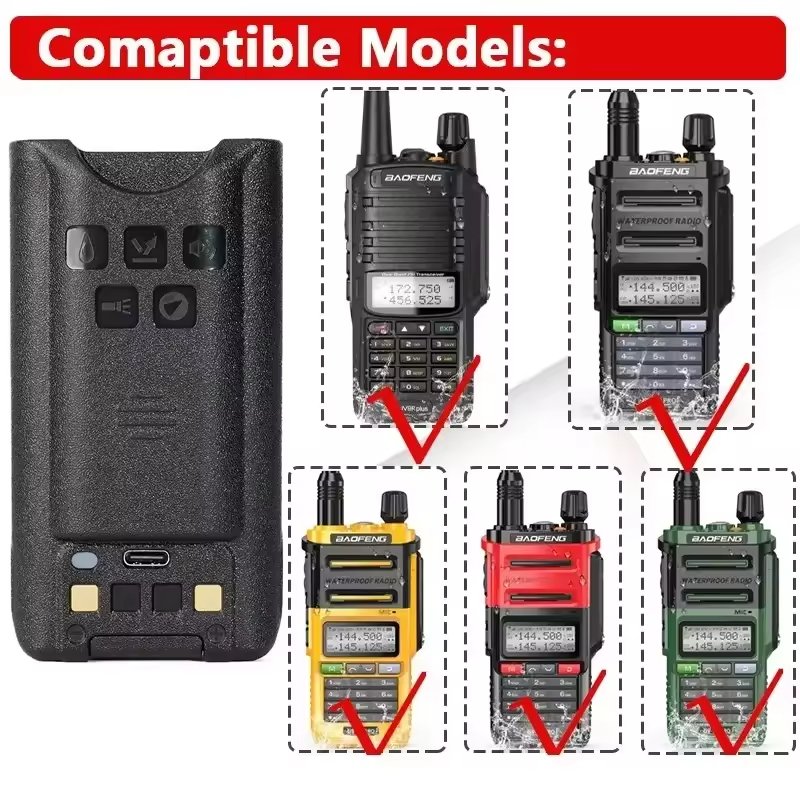 Baofeng Walkie Talkie UV-9R Pro V1 V2 Battery Type-C Recharger Battery With Type-C Charging for UV 9R Plus UV9R PRO Radio